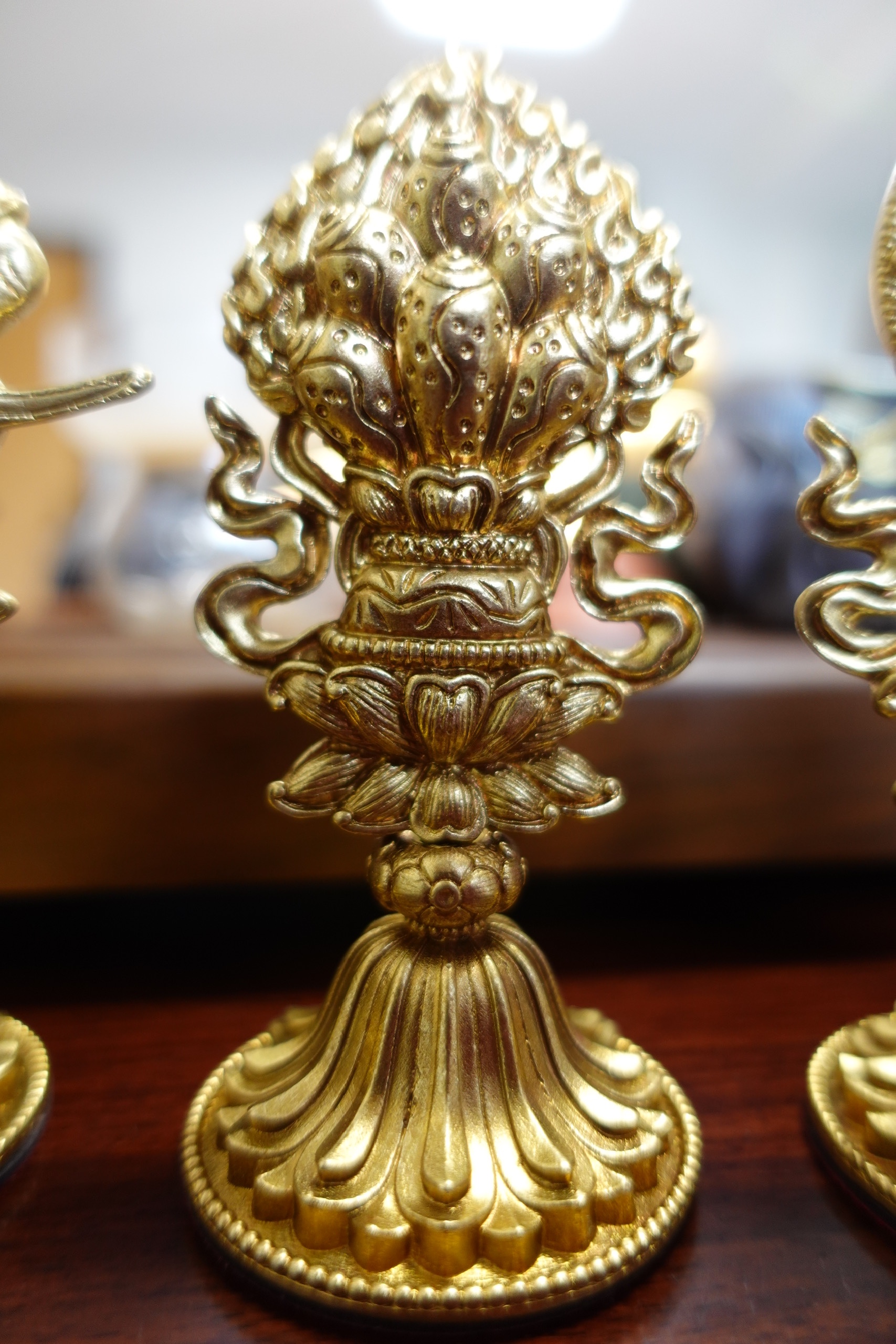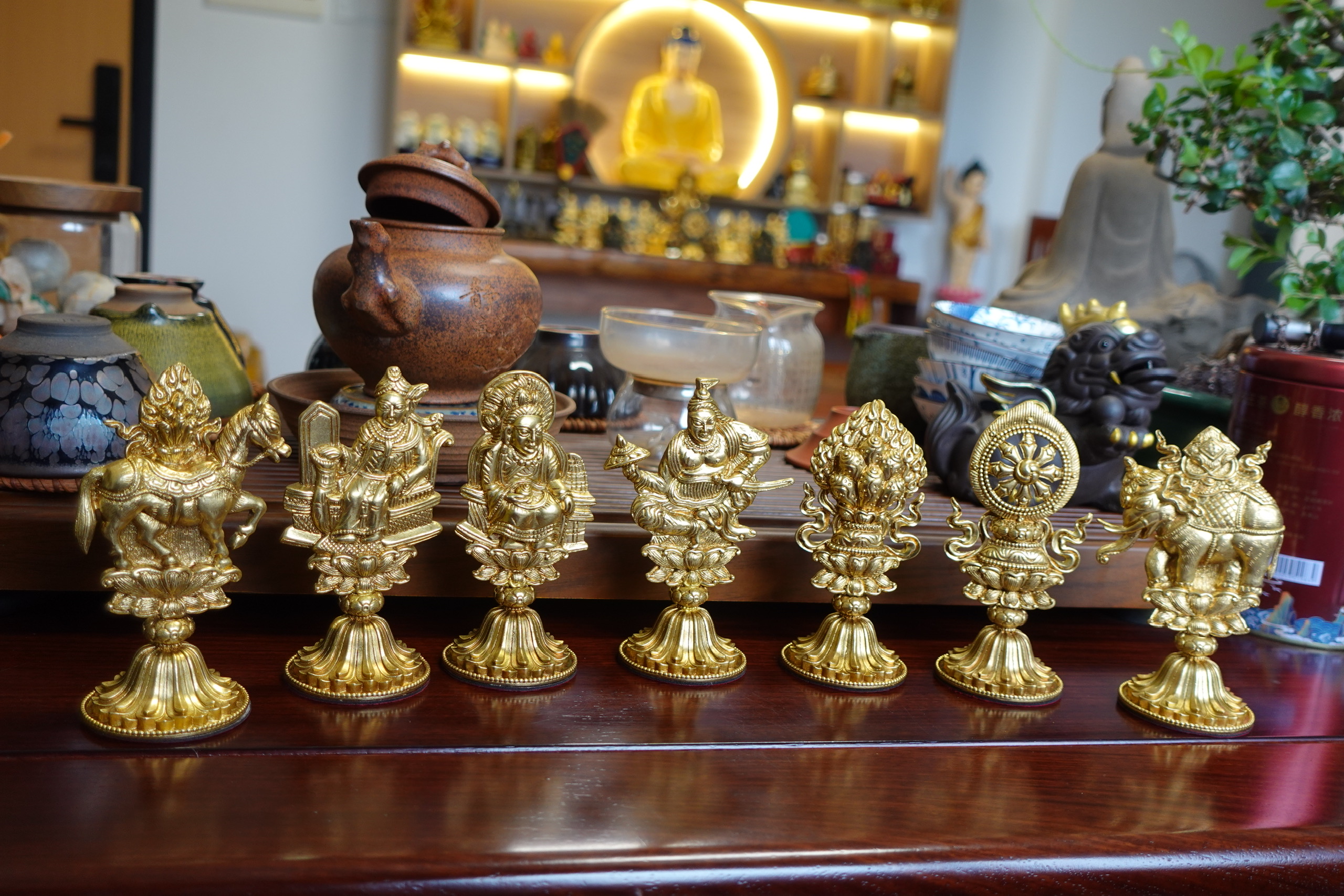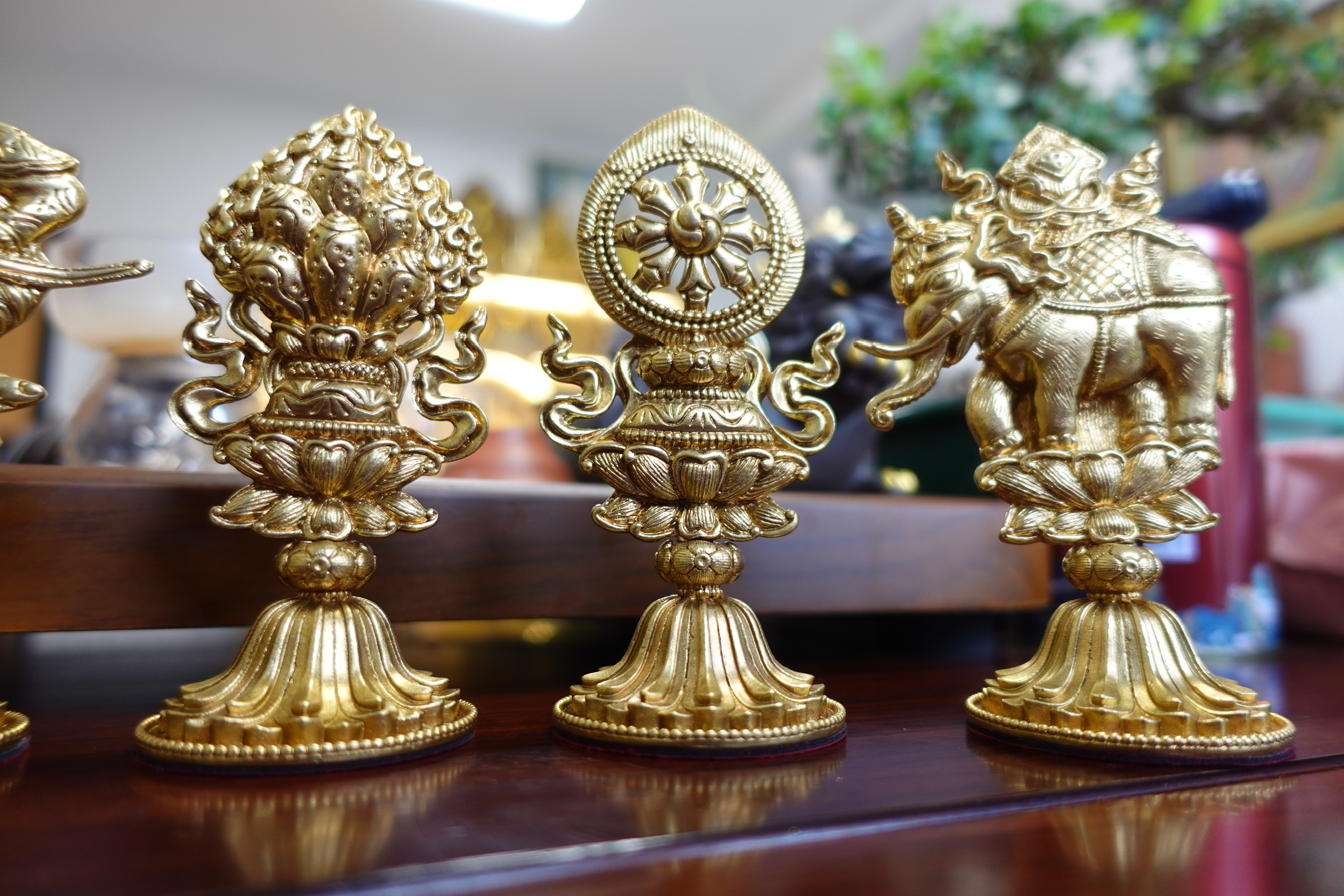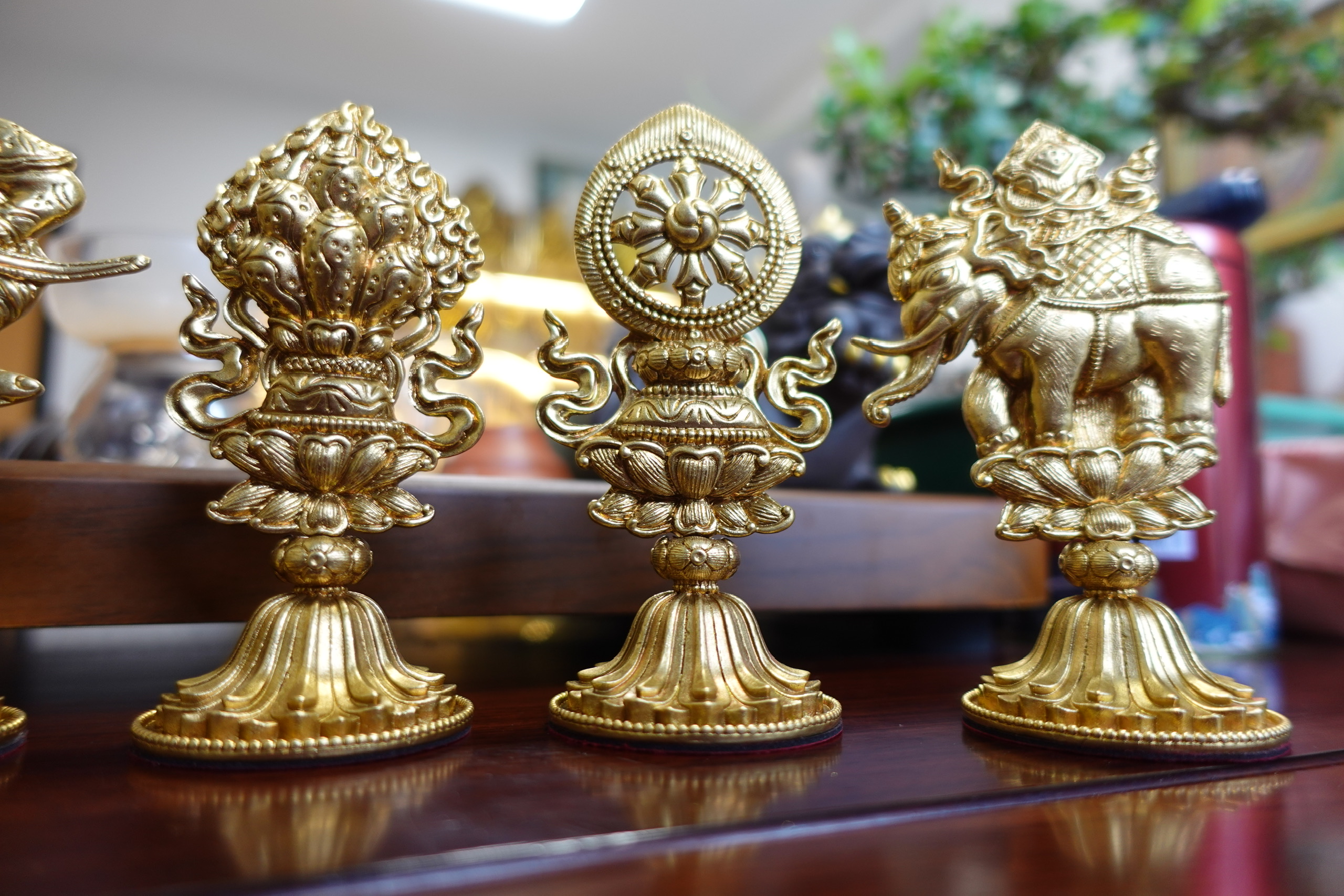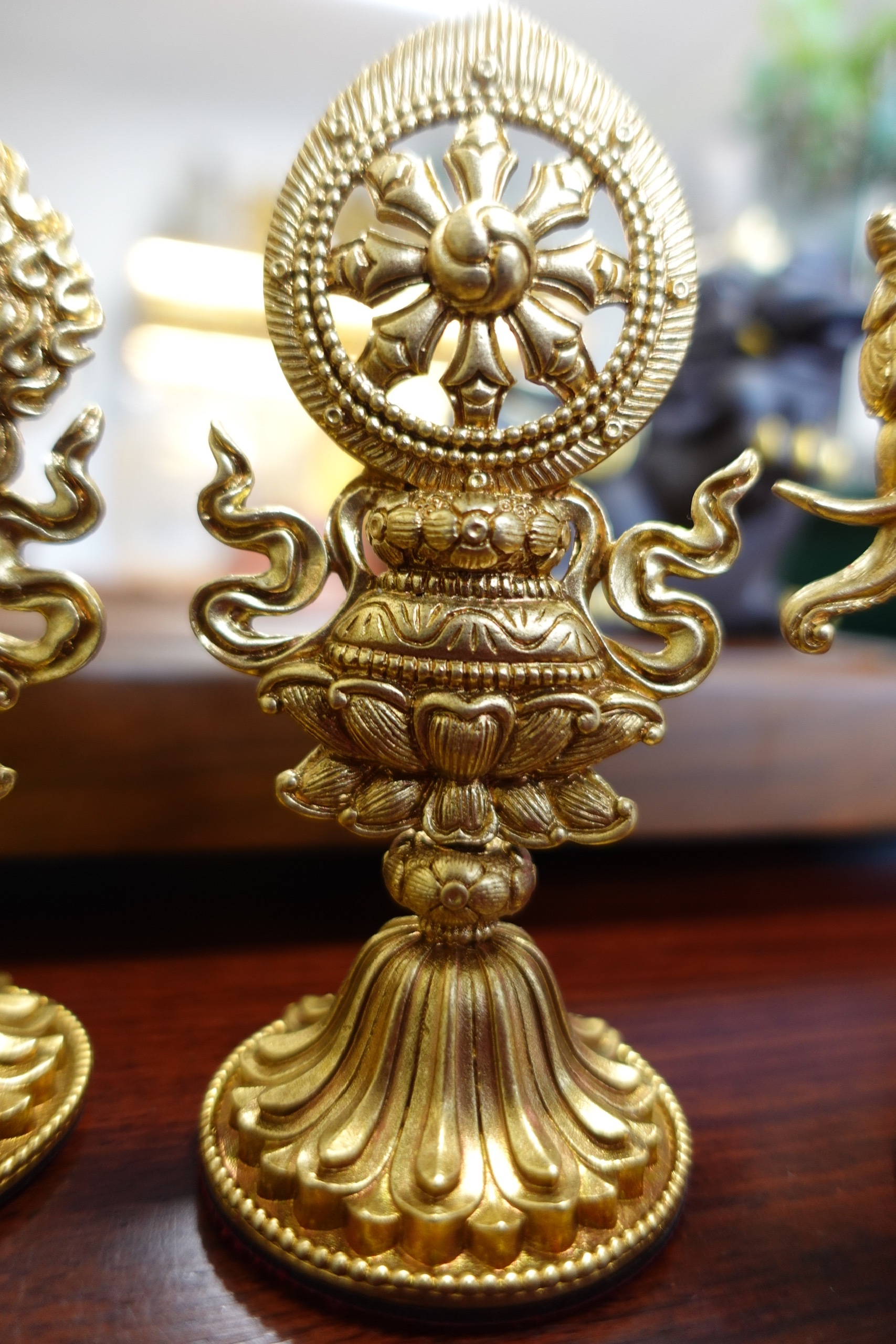 1. Luân bảo (Bánh xe báu) – Tượng trưng cho trí tuệ, giáo pháp đúng đắn của Đức Phật.