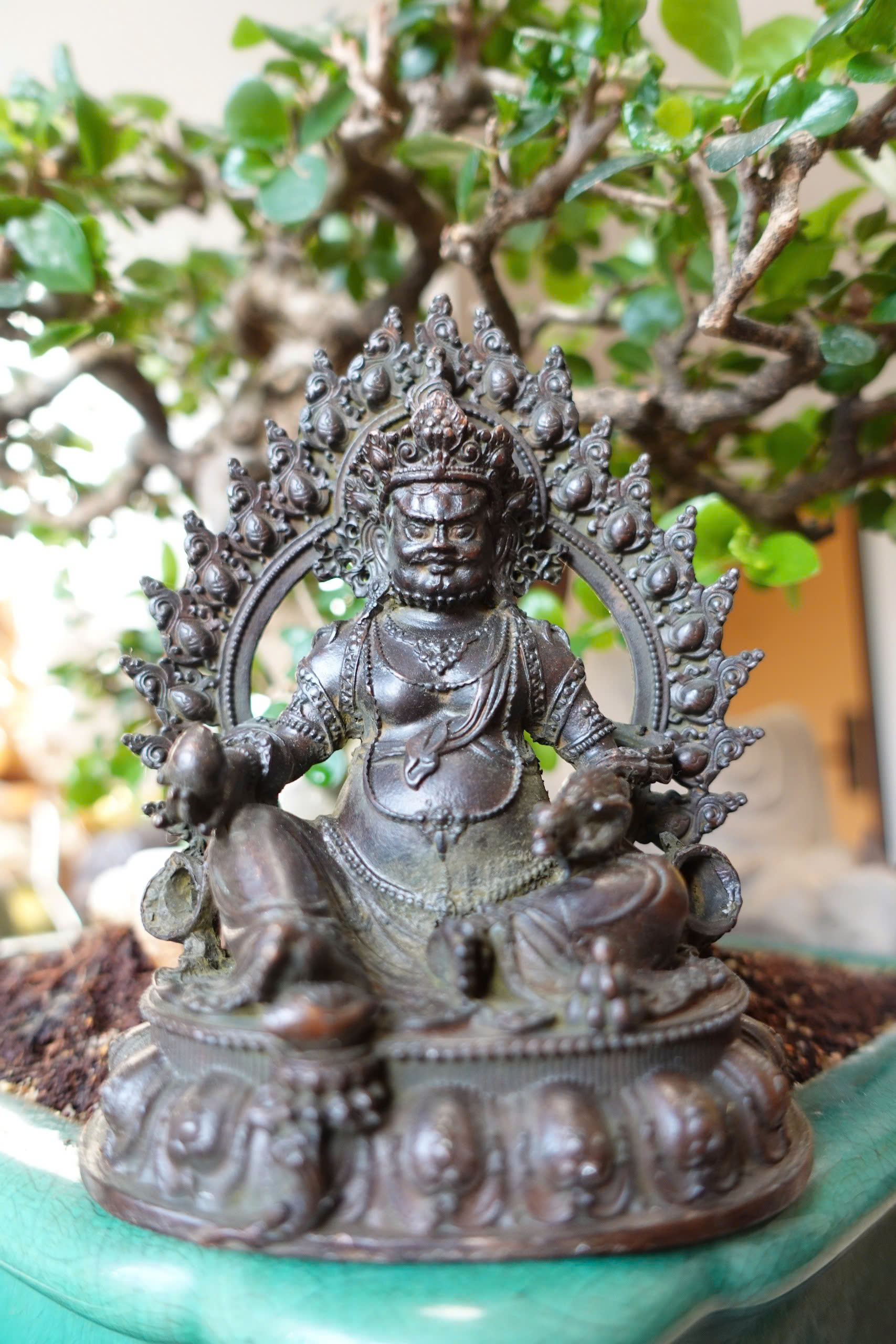 Hoàng Thần Tài có dáng người to và khoẻ, đa số tin rằng to đồng nghĩa với sự giàu có và sang trọng. Gương mặt Ngài mang vẻ kiêu hãnh và Ngài ngồi trong tư thế vương giả. Tu trì chân ngôn của Ngài với lòng thành kính, không vị kỉ sẽ được phù hộ tài lộc, thịnh vượng và được Ngài bảo vệ.
