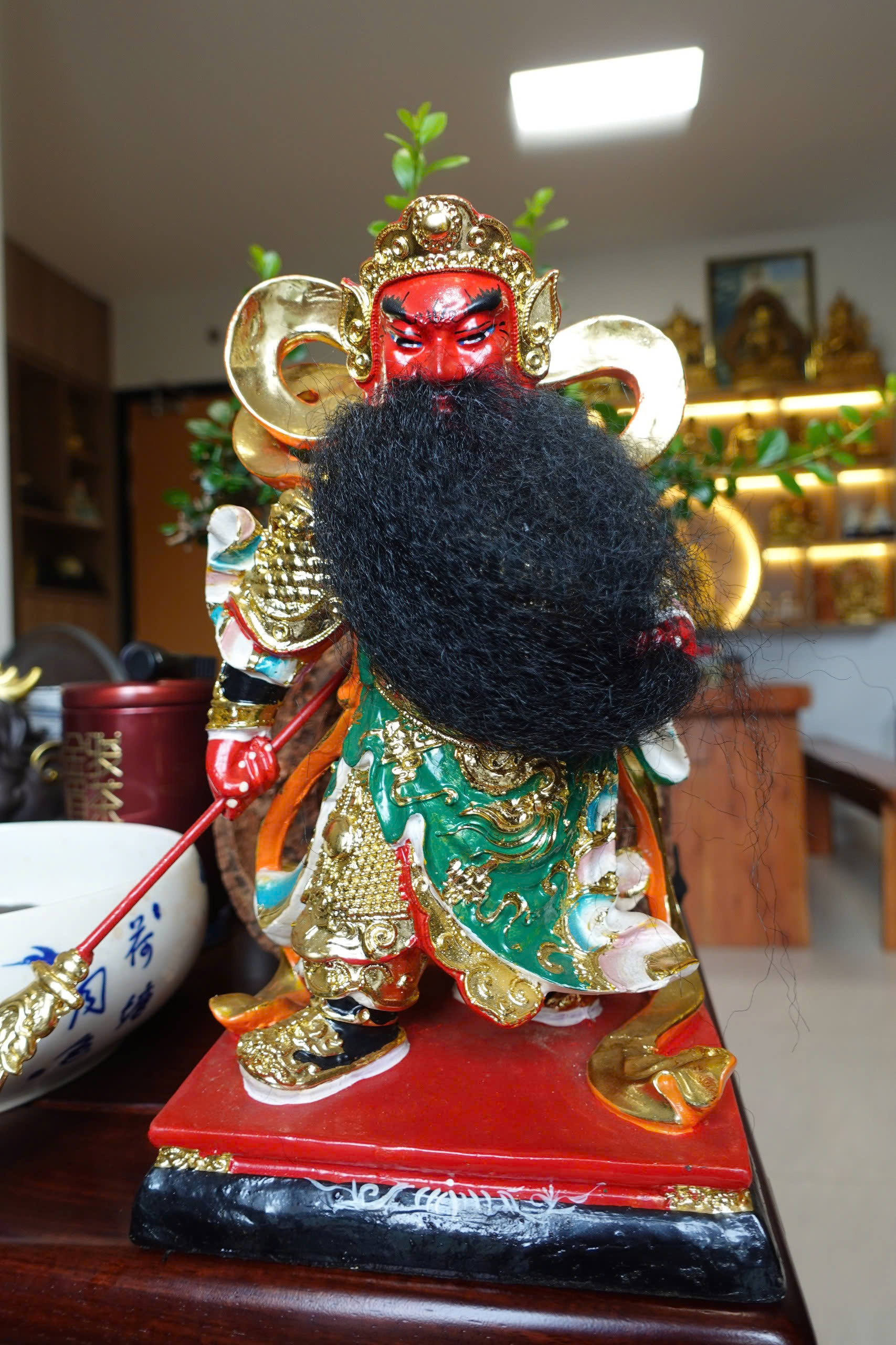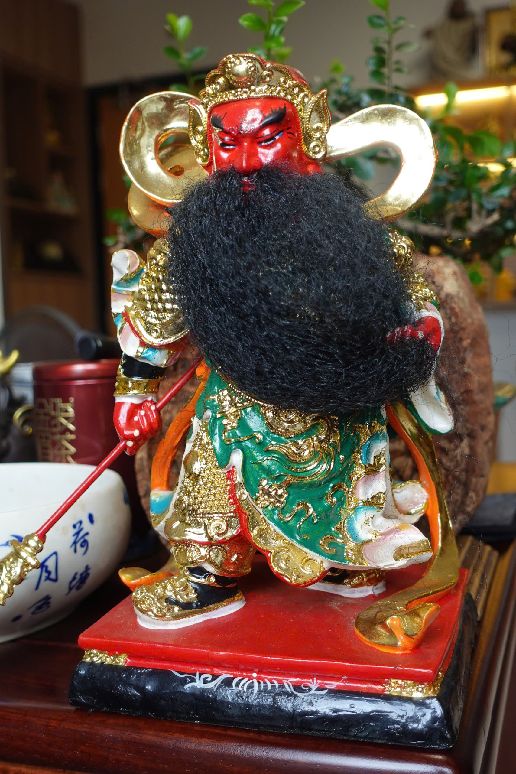 Ngài thường được miêu tả: tay cầm Thanh Long Yển Nguyệt đao, khuôn mặt đỏ và bộ râu dài. Tượng trưng cho lòng trung nghĩa, chính trực, và bảo vệ công lý.